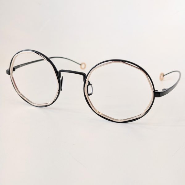 “外側は丸、内側は多角形”っていう、言葉にするとシンプルなメガネ!