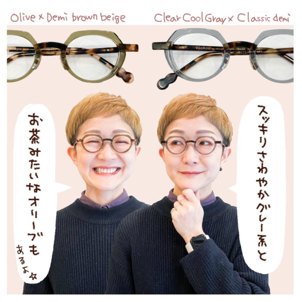 左側、オリーブ×ベージュ系べっ甲カラーになると、ちょっと大人っぽい!