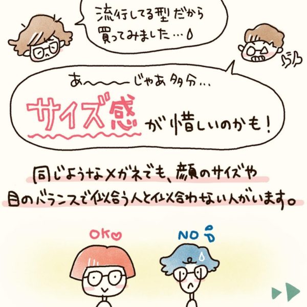 ✅「メガネをおしゃれに掛けたいな」って思ったら、まず気を付けるのは「サイズ選び」ということ