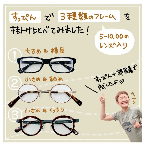 強度近視の度付きレンズが入ったフレームを“すっぴん”で掛け比べてみました!