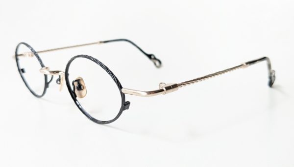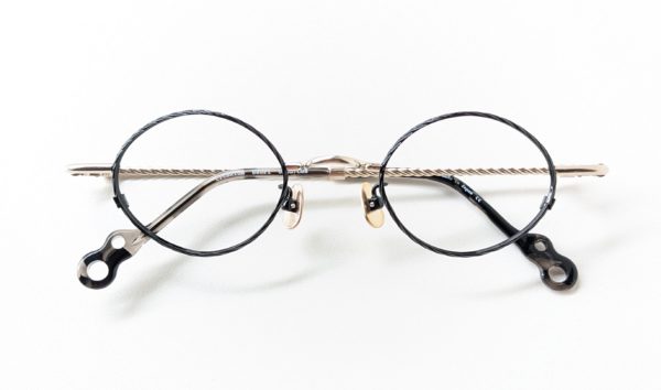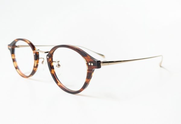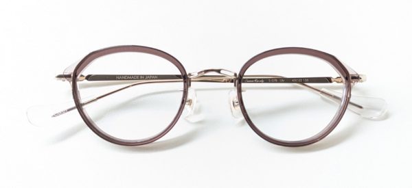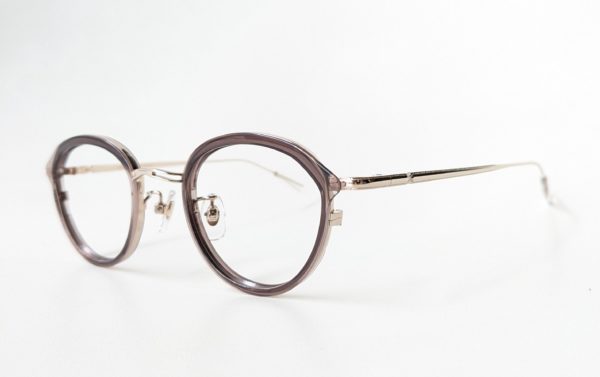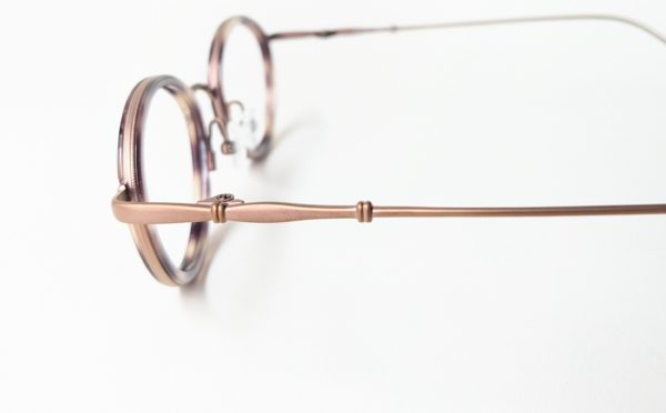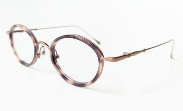 「col.GD」はマットブラウンのメタルフレームと、紫がかったべっこう柄のインナーセルが組み合わせになったコンビネーション。