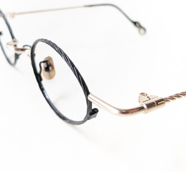 目尻からテンプルにつながるサイドラインは、デザイナーさんのご実家のイスがモチーフなんだそう!