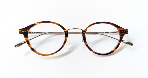 メガネのかたちで言うとバレル(樽)型って呼ばれるような、ちょっと横長でカッチリめのデザイン。