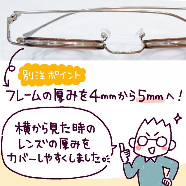 通常4mmで作られているところを5mmでお願いし、強度さんの悩みにありがちな「レンズの厚さ」をカバーしやすくしてもらいました👏
