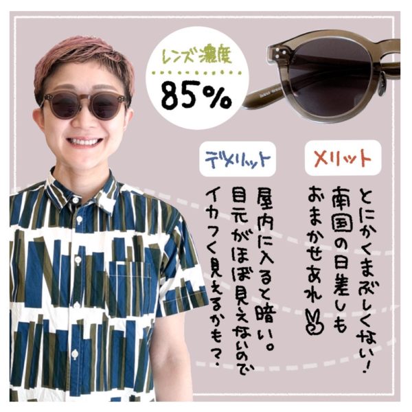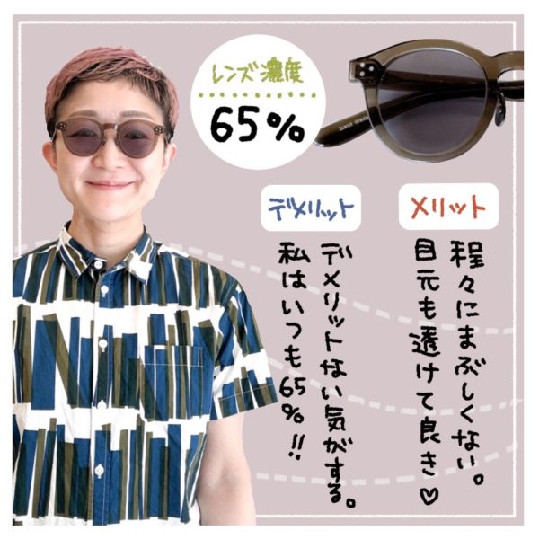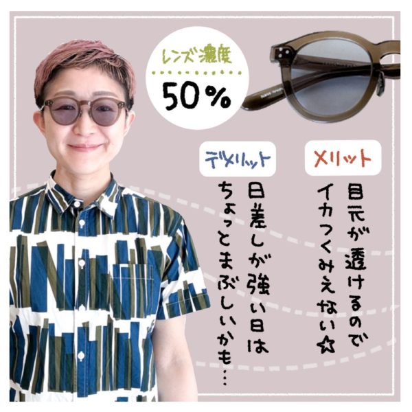 サングラスの選び方にも色々なセオリーがありますが、こんなふうに「レンズの色の濃さ」で選ぶっていう考えもあるんですよ👍