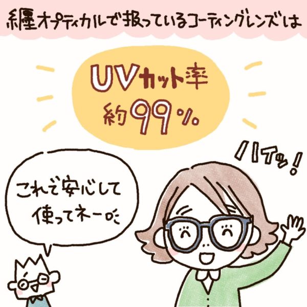 そして纒オプティカル/マトイニコメの店頭で紹介しているコーティング付きレンズは、どれもしっかりUVカット機能が入ったものをおすすめしてます✨