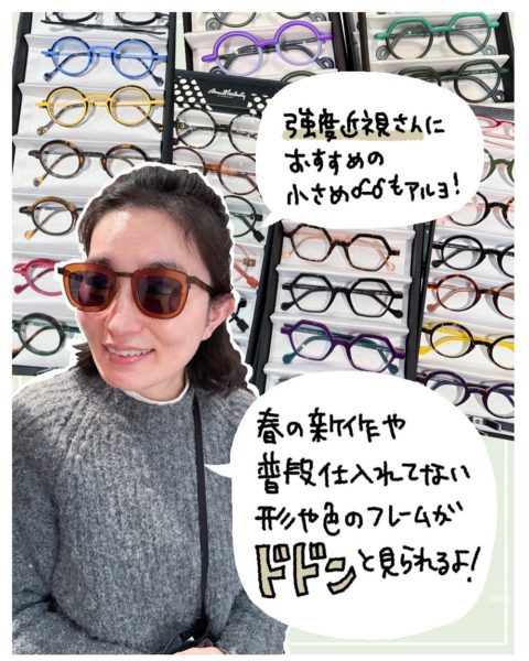 普段お店に並んでない形や色のフレームが沢山見られるよ!