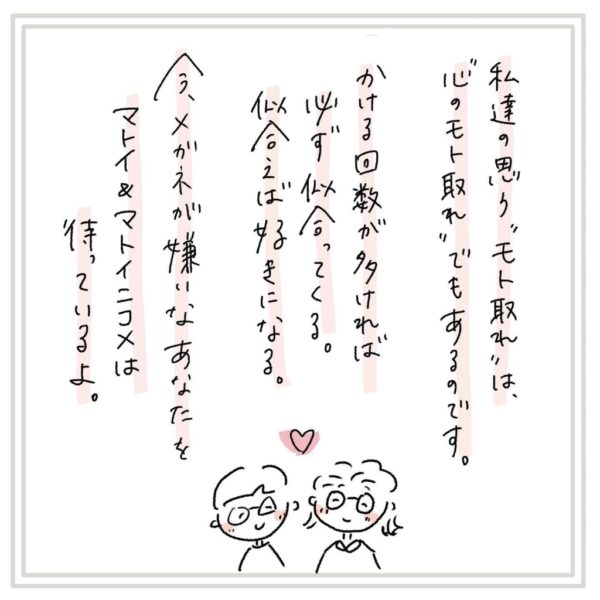 わたしたちはそんな風に「メガネが好きになってきた」って気持ちの変化も一緒にお買い物してもらいたいな、って思ってます。