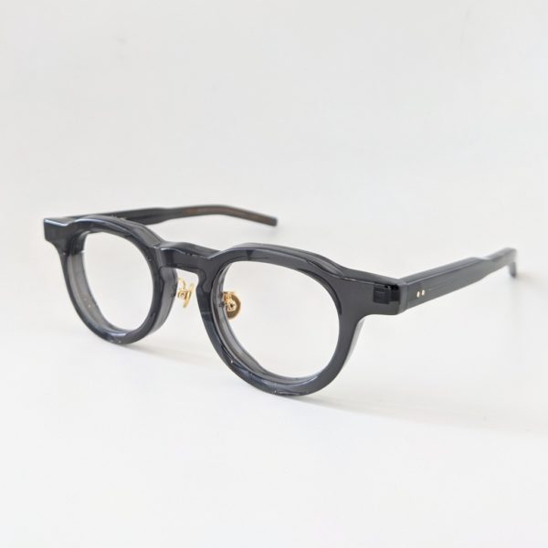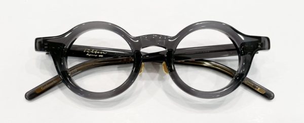 写真右側「Aiguille 03」は輪郭くっきりな丸メガネ。