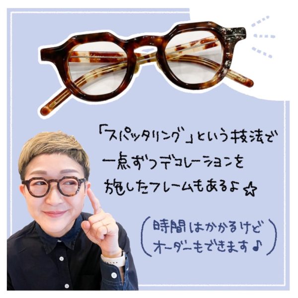そうそう、フィルトンのフレームには「スパッタリング」という絵画の技法を使って加工が施されたモデルもあるんです。