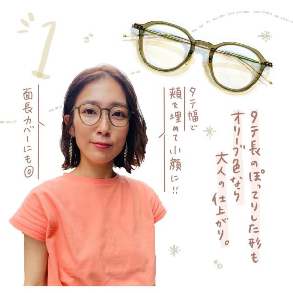 幅のあるフレームで頬をカバーすれば小顔効果も!