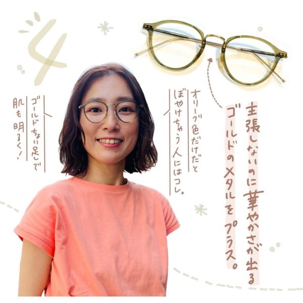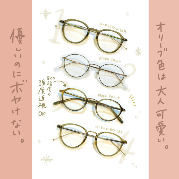 オリーブ色だけだとぼやけちゃう人にはこういうメガネ。