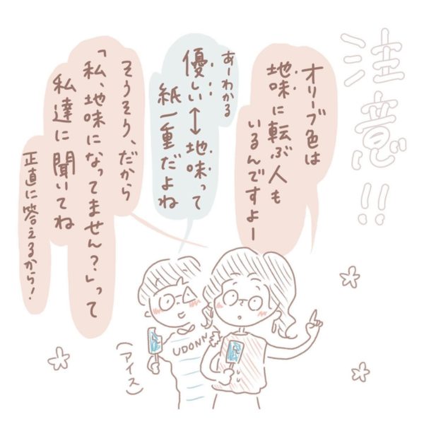 オリーブ色のいいところを一言で表すと「大人可愛い」ってことなんです。