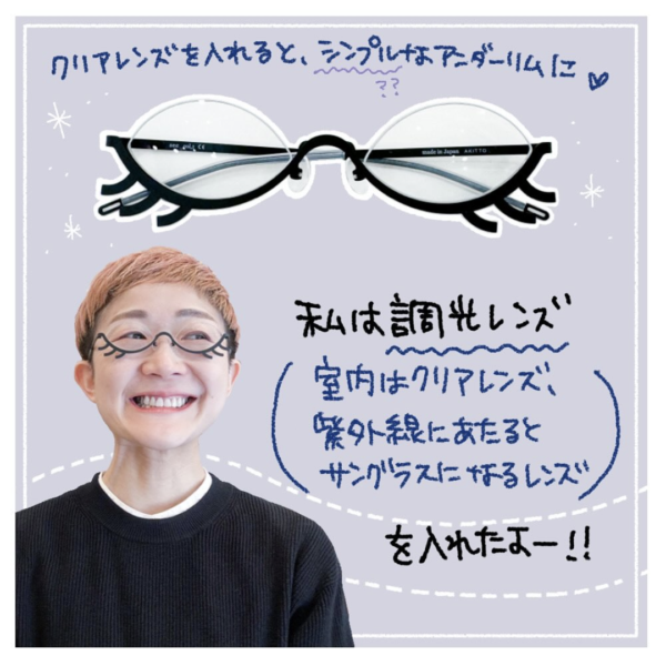 ちなみにクリアレンズを入れると、シンプル?? なアンダーリムのメガネに変身😊