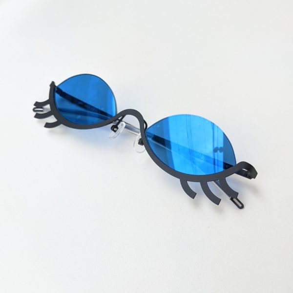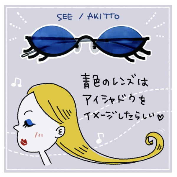 ミラー加工までされた青色のレンズは、アイシャドウをイメージして組み合わせたんですって💖
