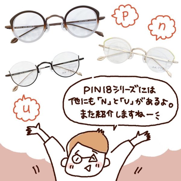 今日のフレームは「PIN18-P」というモデル名ですが、他にも「N」と「U」の姉妹がいらっしゃいます。