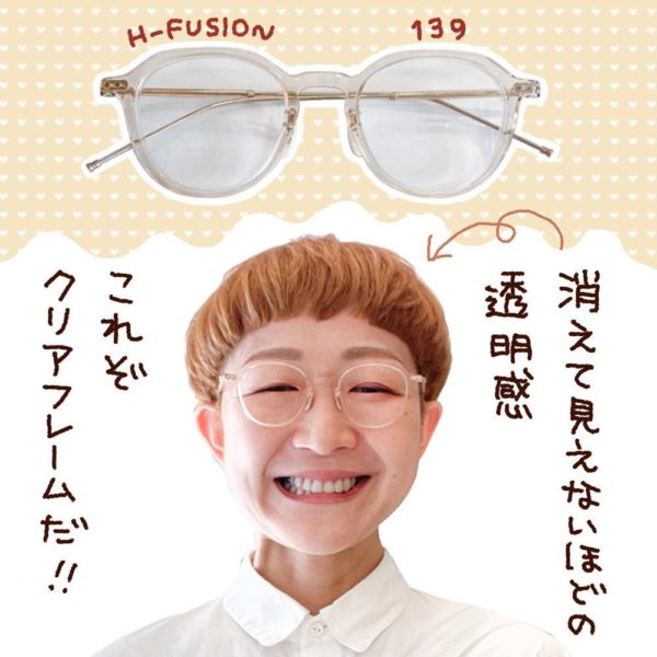 クリアでも、色も形もしっかりアピールしたいならこんなメガネ!