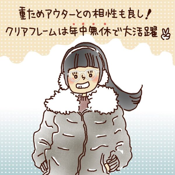クリア系のフレームは冬のコーディネートにも大活躍してくれますよ