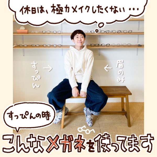 なので今回は、私がメイクをしない日にどんなメガネを掛けてるか、すっぴん姿(眉毛だけ描いたよ)でご紹介~😆