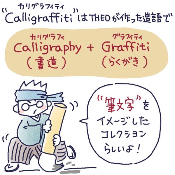 これは「カリグラフィー(書道)」+「グラフィティー(落書き)」を組み合わせたTHEO発信の造語。