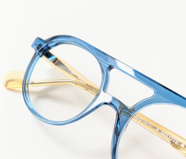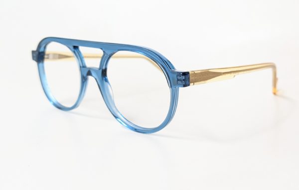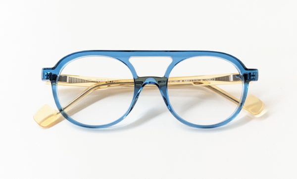 「col.25B12」はクリアブルーのフロントとクリアイエローのテンプルが組み合わせになったバイカラー。