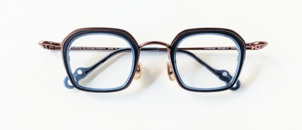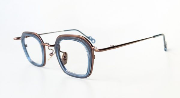 ブロンズのメタルフレームにクリアブルーのインナーセルが入ったクールな見た目。