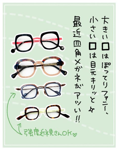 本日は最近私が気になっている「四角いめがね」の特集です✨