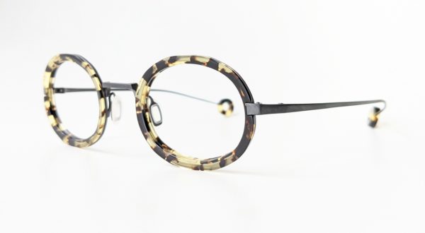 「col.YHBK」はマットブラックにイエローデミ(黄色味の強いベッコウ柄)のプラスチックが組み合わせられています。