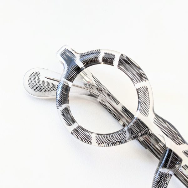 “どっしりボリュームのある丸メガネ”というだけではなく、みんなの視線を集める『柄づかい』がポイント!