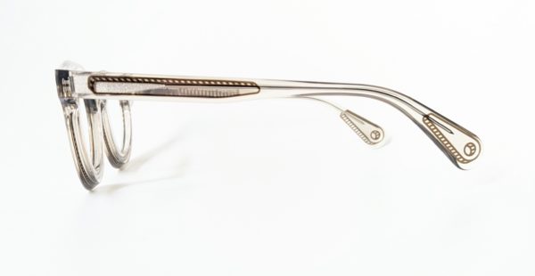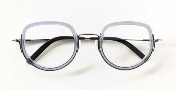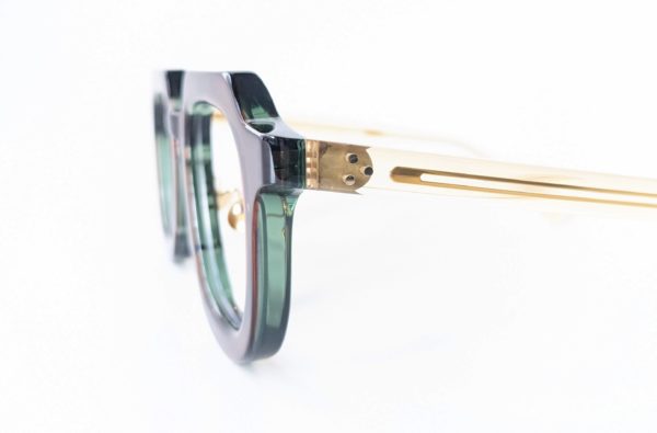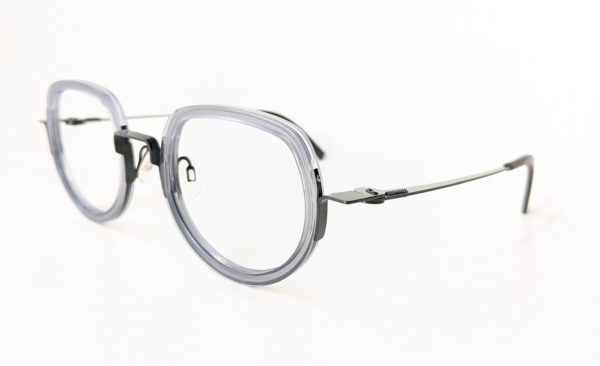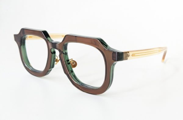 クリアグレーのプラスチックとダークグリーンのメタルフレームが組み合わせになったコンビネーションモデル。