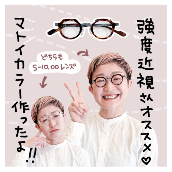 さらに言えば“ちょっと濃いめ・ちょっと太め”なデザインで“強度レンズの存在感”をごまかしてくれる「くっきりフレーム」のほうが満足度の高い仕上がりになりますよ😘