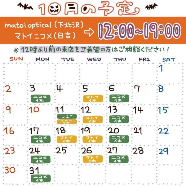 matoi optical & マトイニコメ【10月の営業のお知らせ】