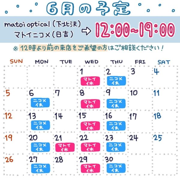 matoi optical & マトイニコメ【6月の営業のお知らせ】