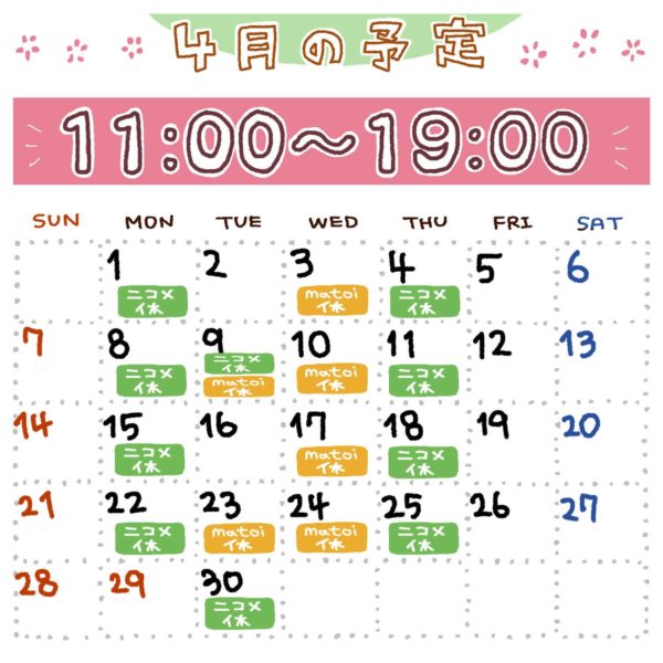 matoi optical & マトイニコメの営業スケジュールです💁♀️