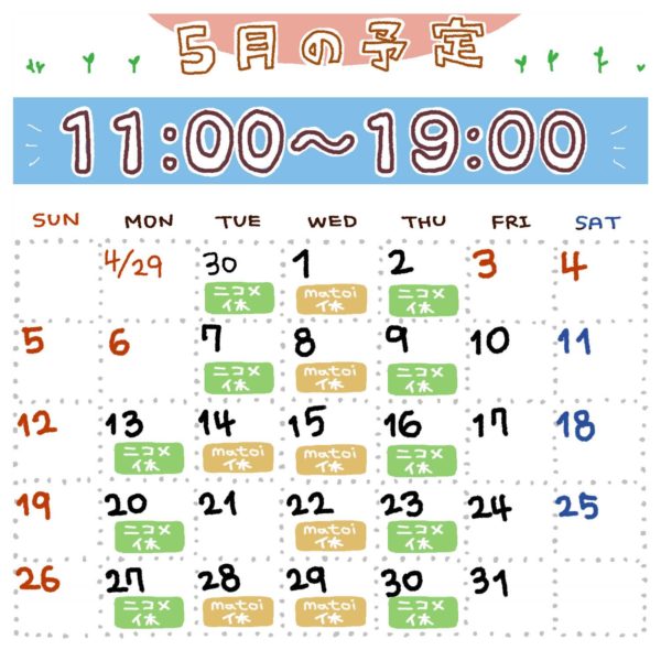 matoi optical & マトイニコメ【5月の営業のお知らせ】