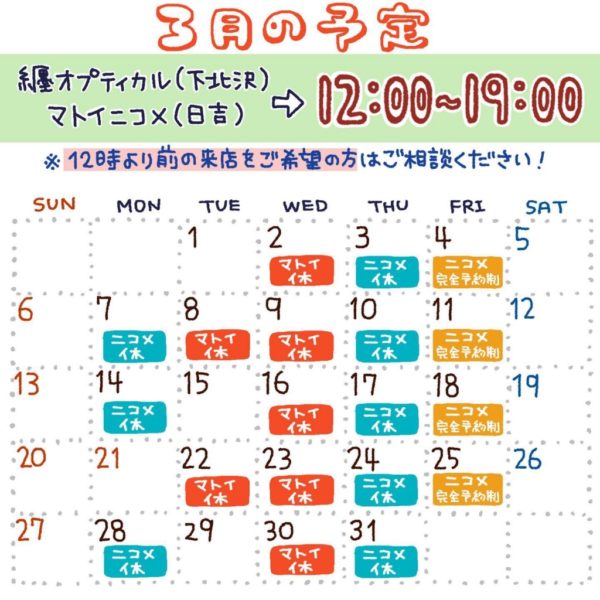 纒オプティカル/マトイニコメ【3月の営業のお知らせ】