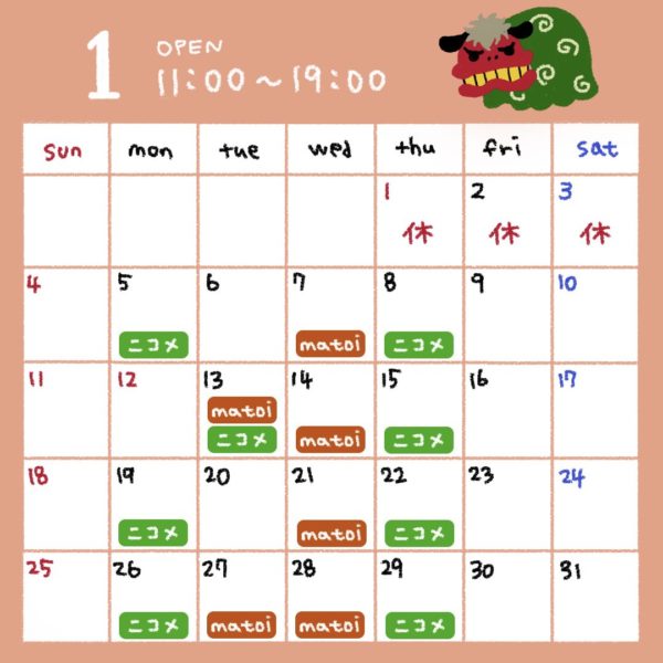 matoi optical & マトイニコメの営業スケジュールです💁♀️