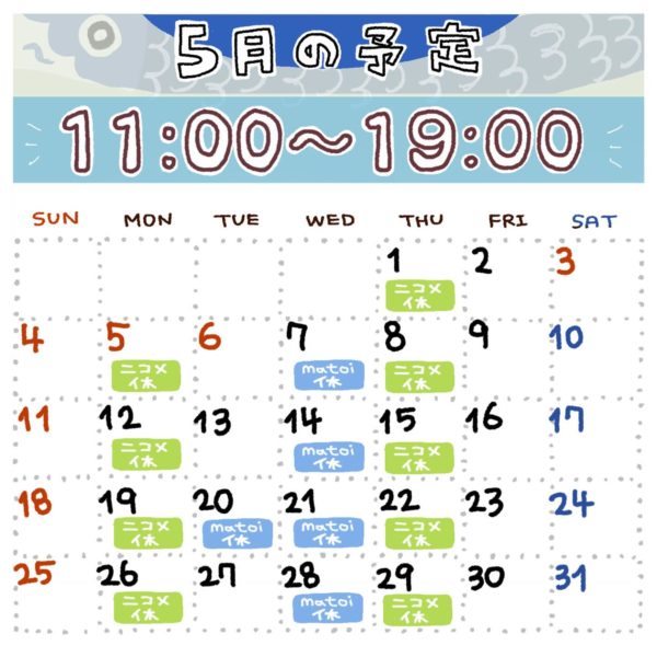matoi optical & マトイニコメの営業スケジュールです💁♀️